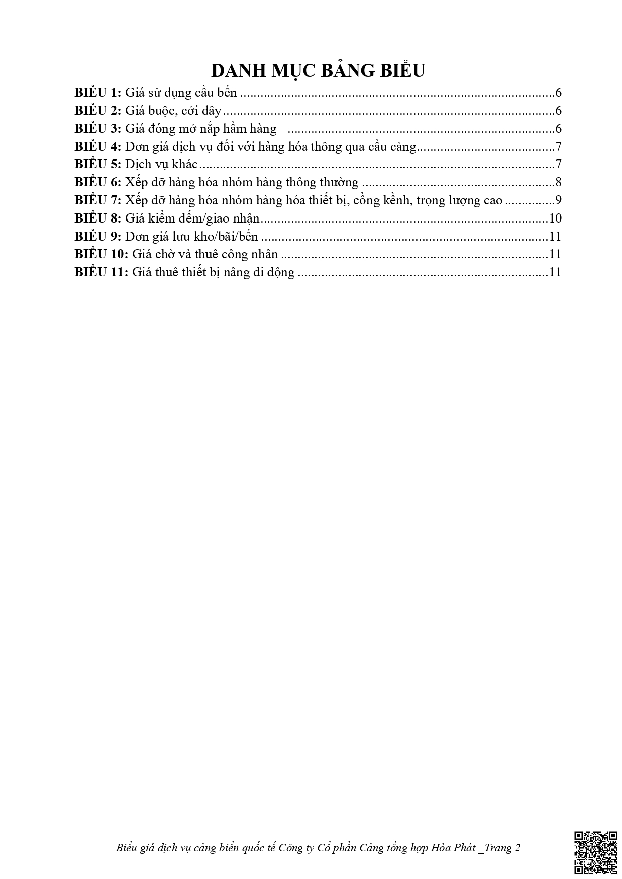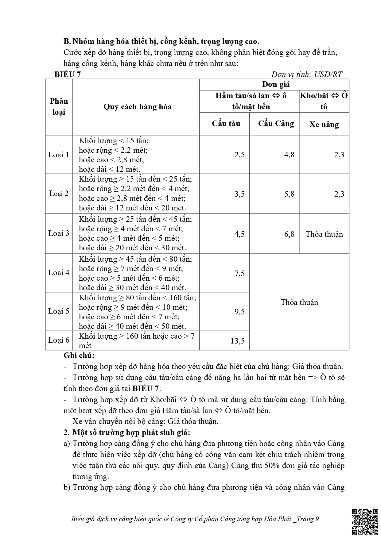 • Bảng giá dịch vụ cảng